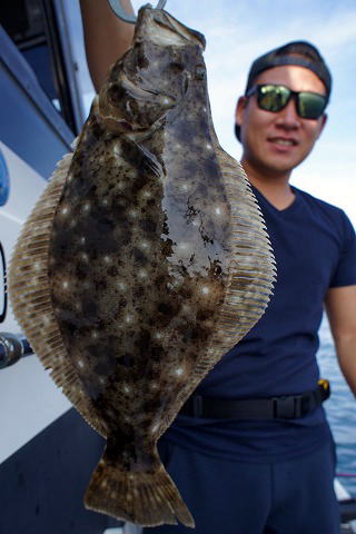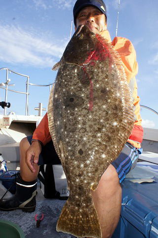 写真撮影ご協力ありがとうございましたm(_ _)m 10月1日(金) 水温:22.7〜24.1℃タテ釣り(付けエサなし)ヒラメ便