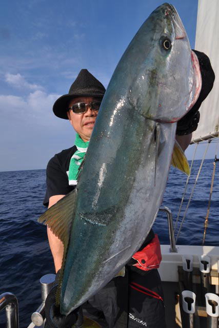 深場の時合いは昼まで続き、ラストにヒラマサ狙ったら良型ヒット、かなり走られたけど中層で掛けたので無事キャッチ(≧∀≦)
