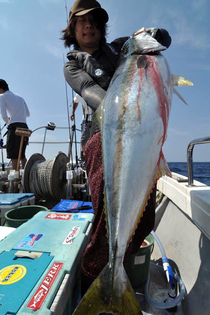 女性アングラーが唯一2発ヒットさせ、唯一の鰤を釣ってくれました (≧∀≦)