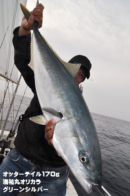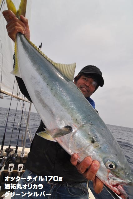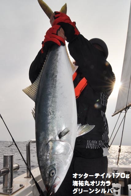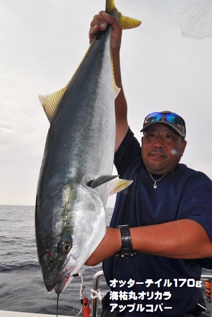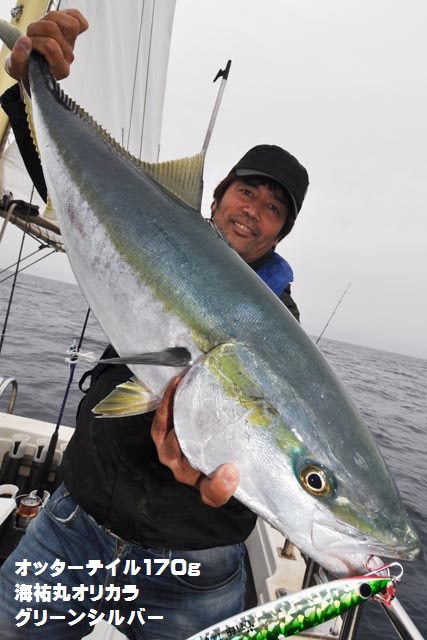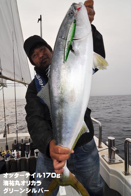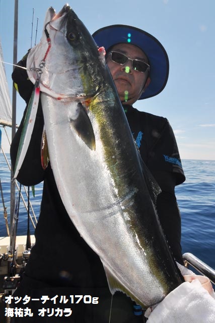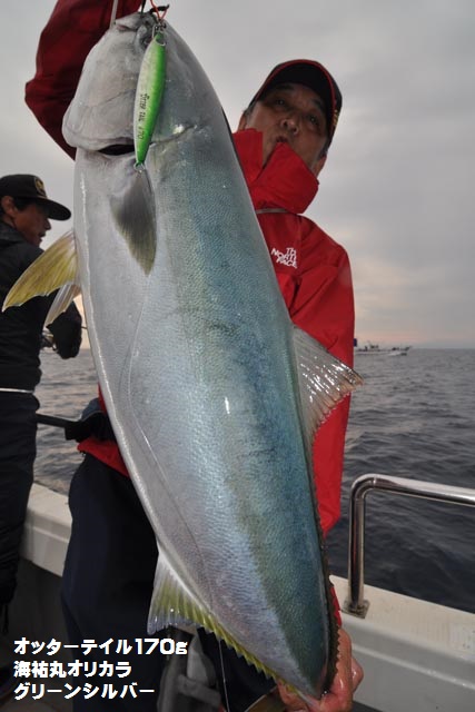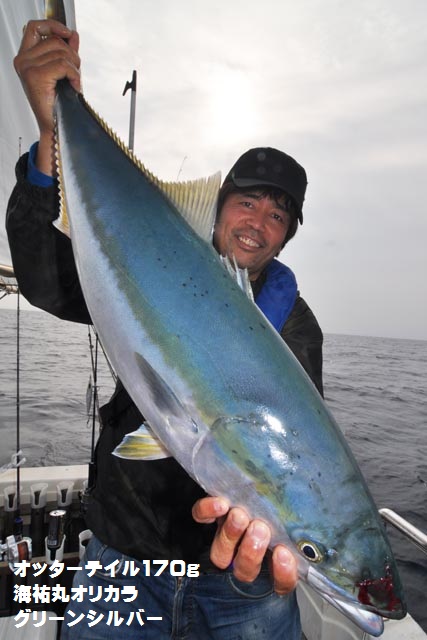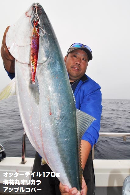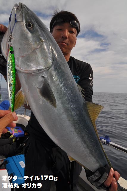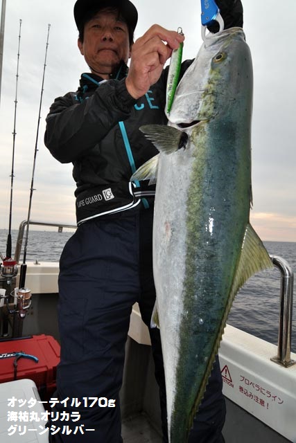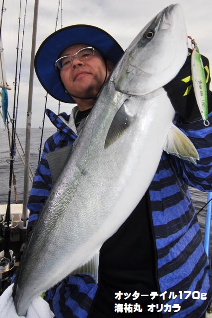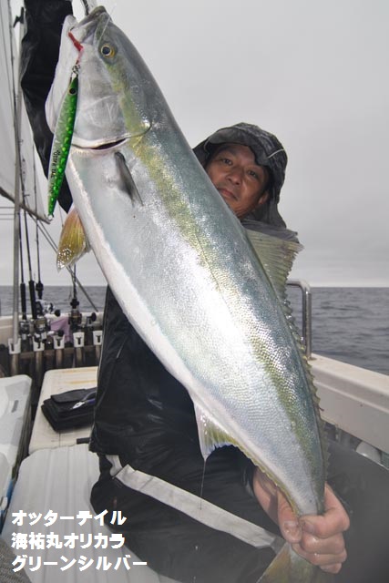 朝一、プチ時合いあり、ダブルヒットで鰤2本キャッチ、1作目と2作目の海祐丸オリカラでしたよ♪