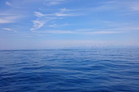 昼過ぎに青物がベイトを追い始めボイルも!しかし不発で再び静かに (>_<)