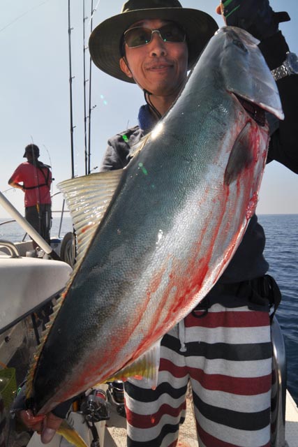 午前は2時間の時合いで 鰤6本、バラシ8回、ラインブレイク2回、で終了〜 (((( ;゚Д゚)))